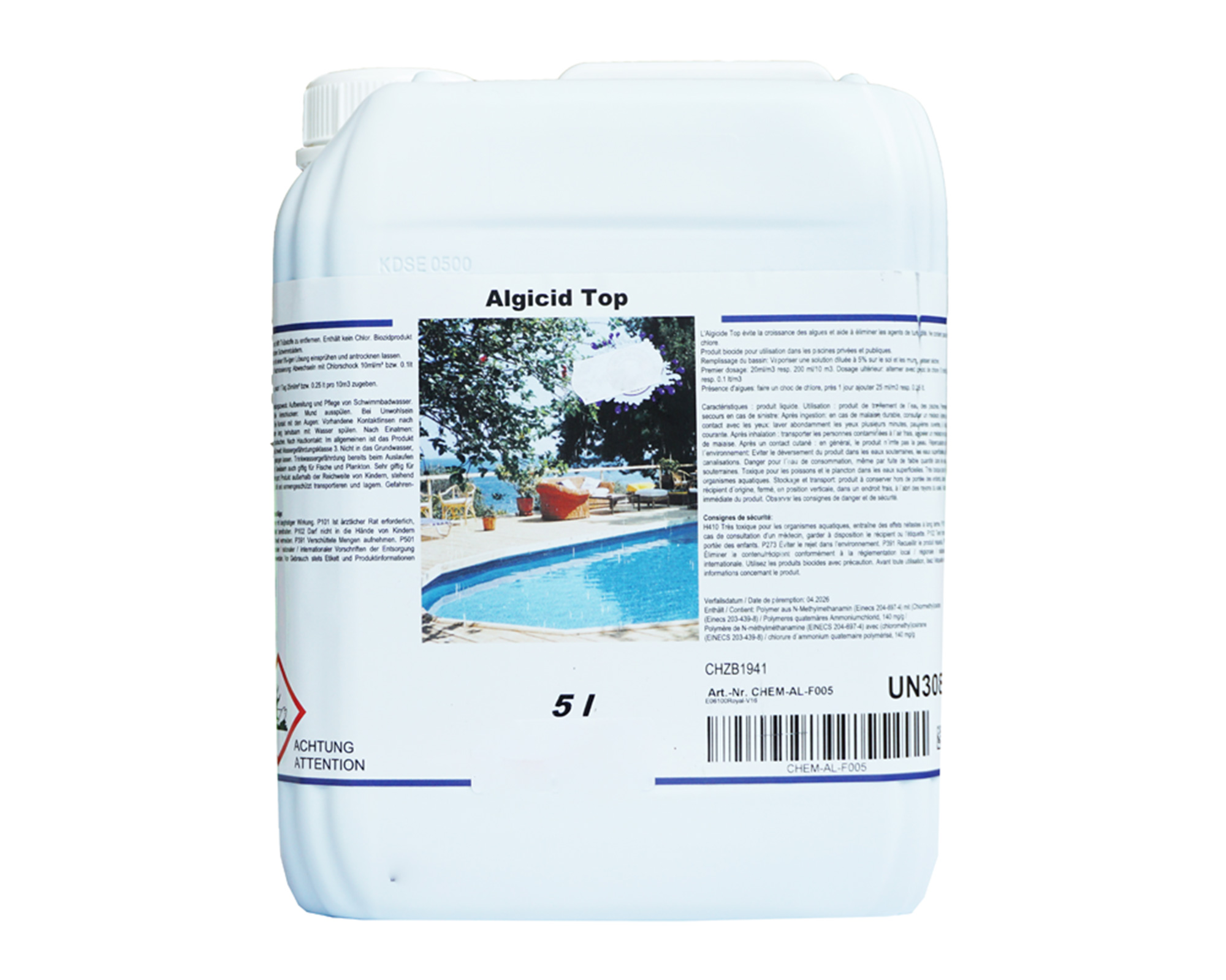 - Algicid Top sollte versetzt zu Chlor beigefügt werden. Ideal 1 - 2 Tage später