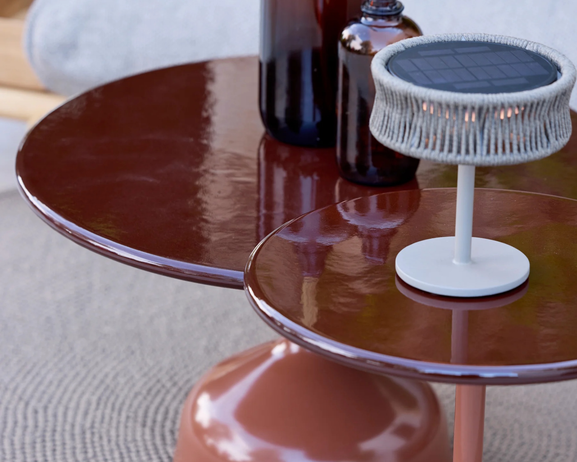 - Beistelltisch Glaze Tischplatte Lavastein ind Burgundy, Gestell in Aluminium Desert red.