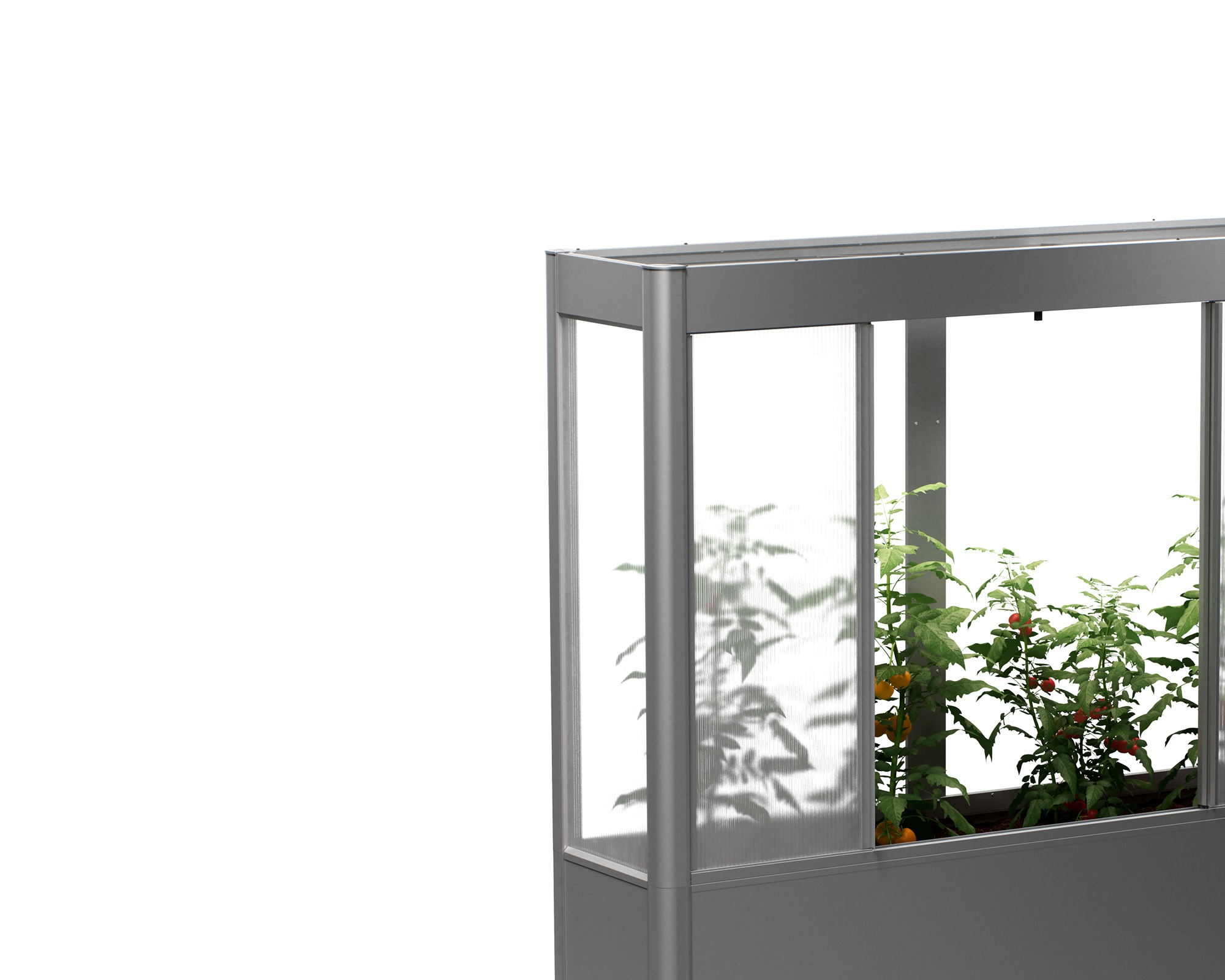 Die ergonomische Arbeitshöhe ermöglicht ein rückenschonendes Arbeiten, während der großzügige Innenraum optimale Bedingungen für hochwachsende Pflanzen wie Tomaten schafft. Die glatten Flächen ohne sichtbare Schrauben oder Nieten verleihen dem Gewächshaus ein elegantes Erscheinungsbild und erleichtern zugleich die Reinigung.