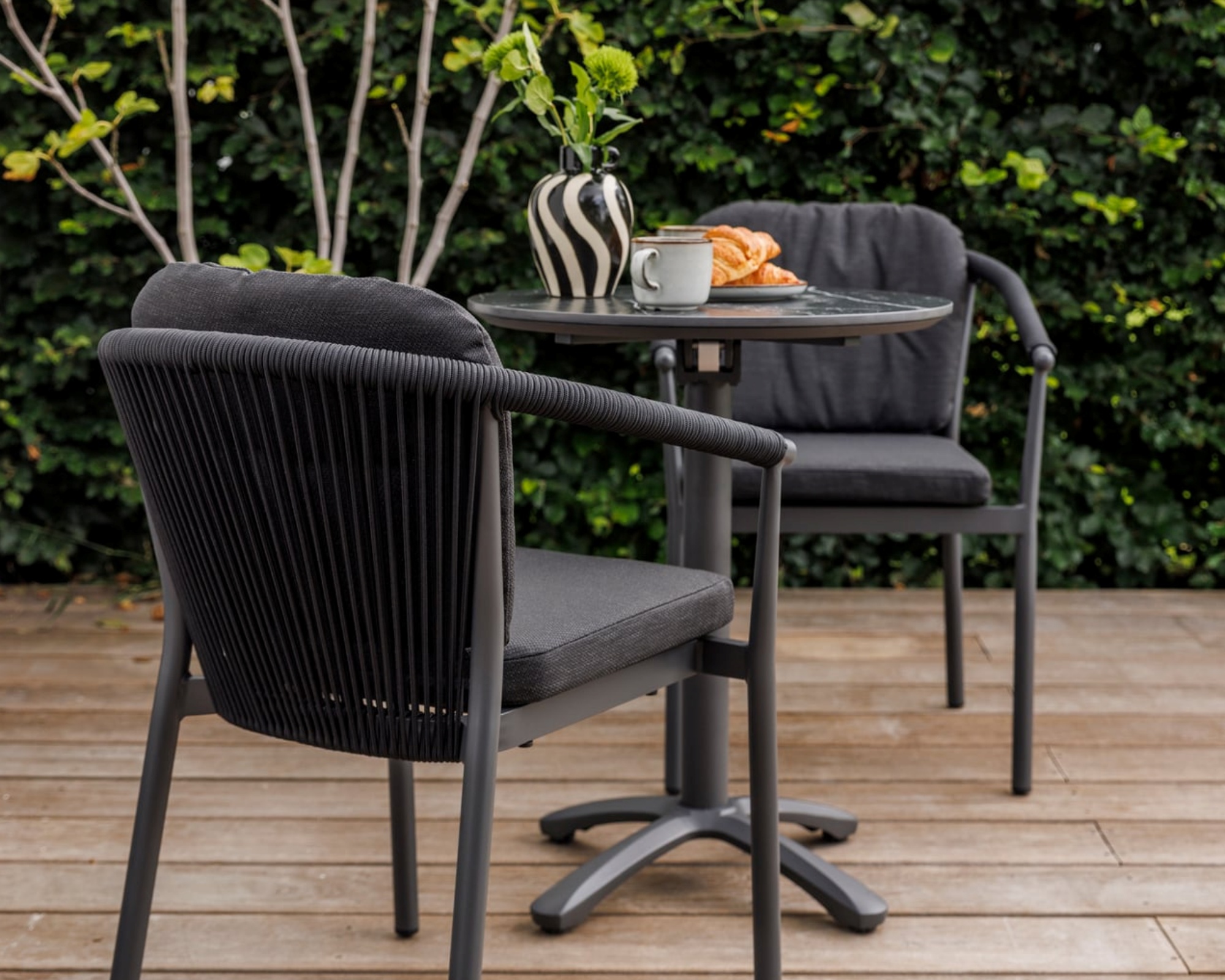 - Gartenstuhl mit Outdoor Rope in Grey, Gestell Aluminium pulverbeschichte Lava, Kissen in Soltx Graphite