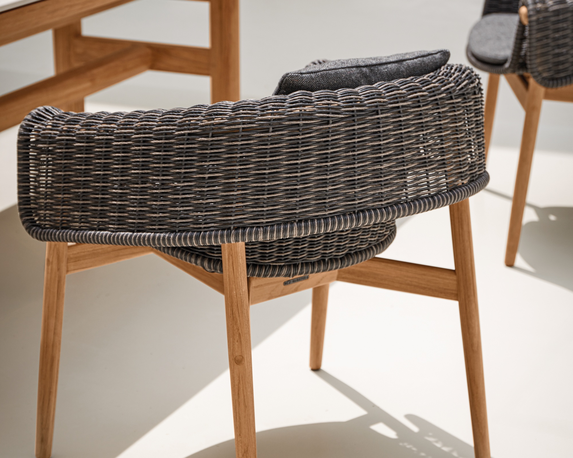 Der nachhaltig gewonnene Teakholzrahmen bildet die warme, natürliche Basis dieser aussergewöhnlichen Kollektion. Ergänzt wird er durch sorgfältig gefertigte Kunstfasern in den Farben Sorrel oder Umbra, die nicht nur elegant wirken, sondern auch besonders wetter- und UV-beständig sind. Für zusätzlichen Komfort sorgen die hochwertigen Outdoor-Polster, die perfekt auf das Design abgestimmt sind.