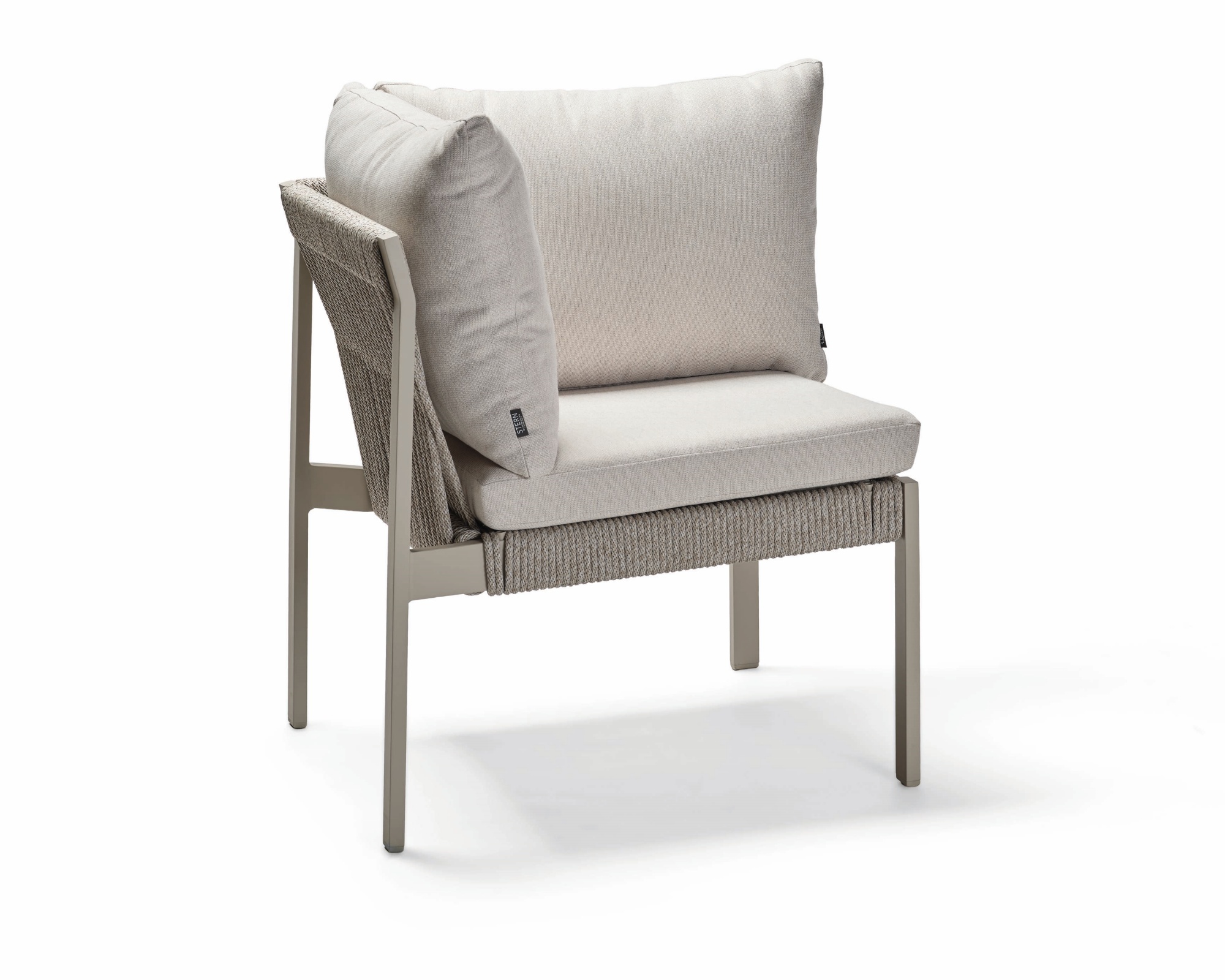 - Eckteil mit Synthetikfaser - Kordel in Greige, Kissen Vanilla, Gestell Aluminium pulverbeschichte Greige