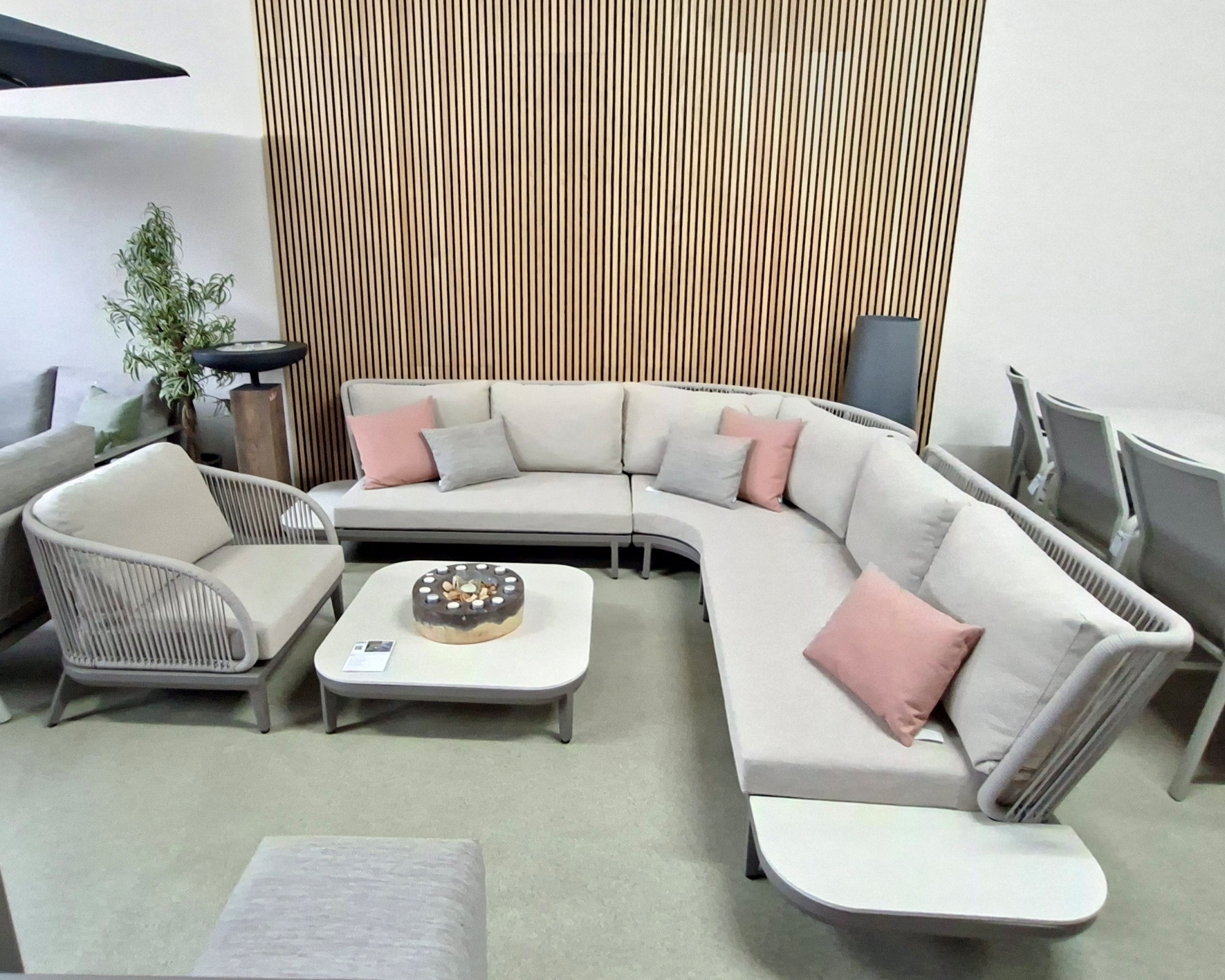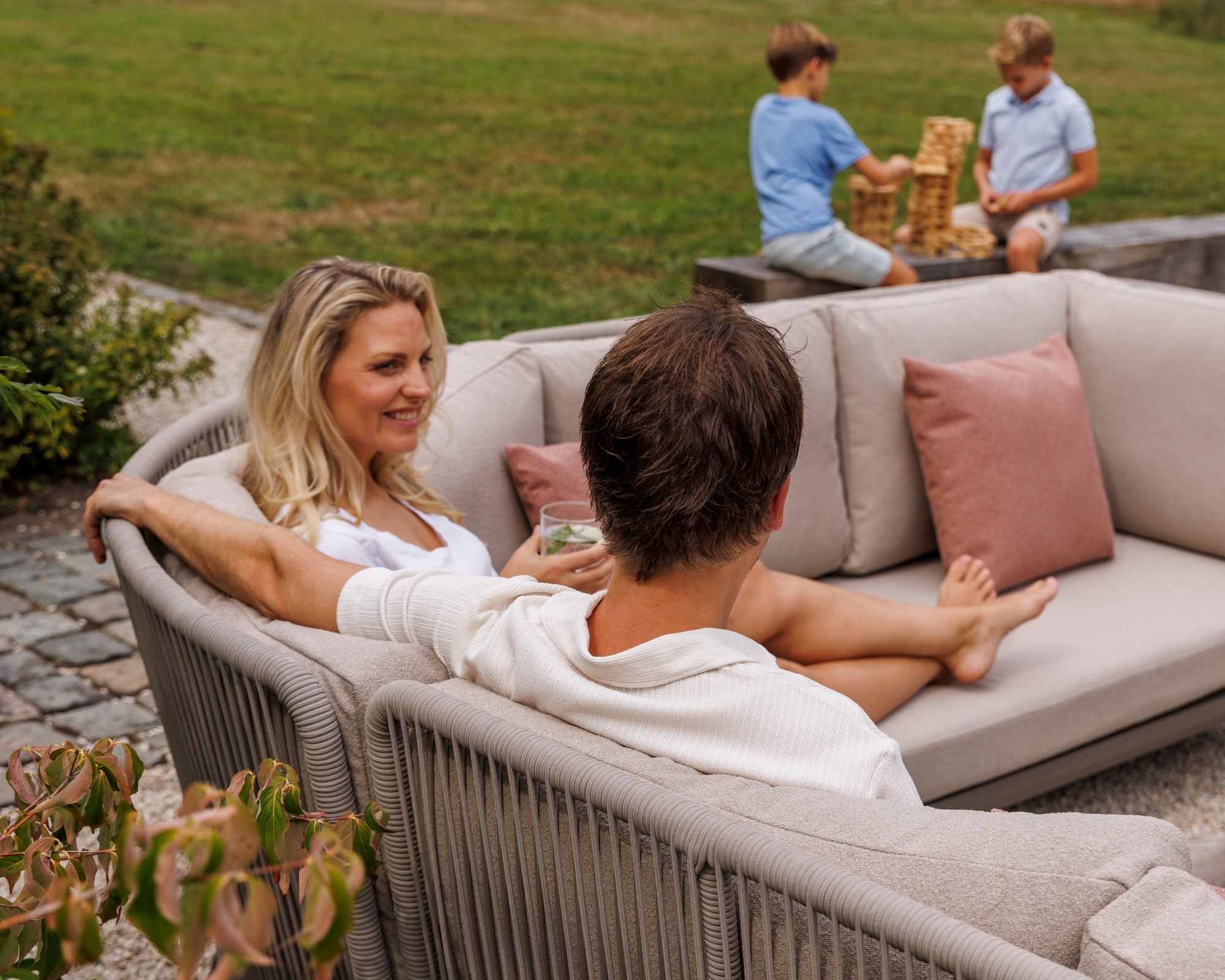 Zeitloses Design: Organische Formen und edle Materialien machen die Lounge zu einem vielseitigen Highlight, das sich mühelos in klassische wie auch moderne Outdoor-Settings integriert.