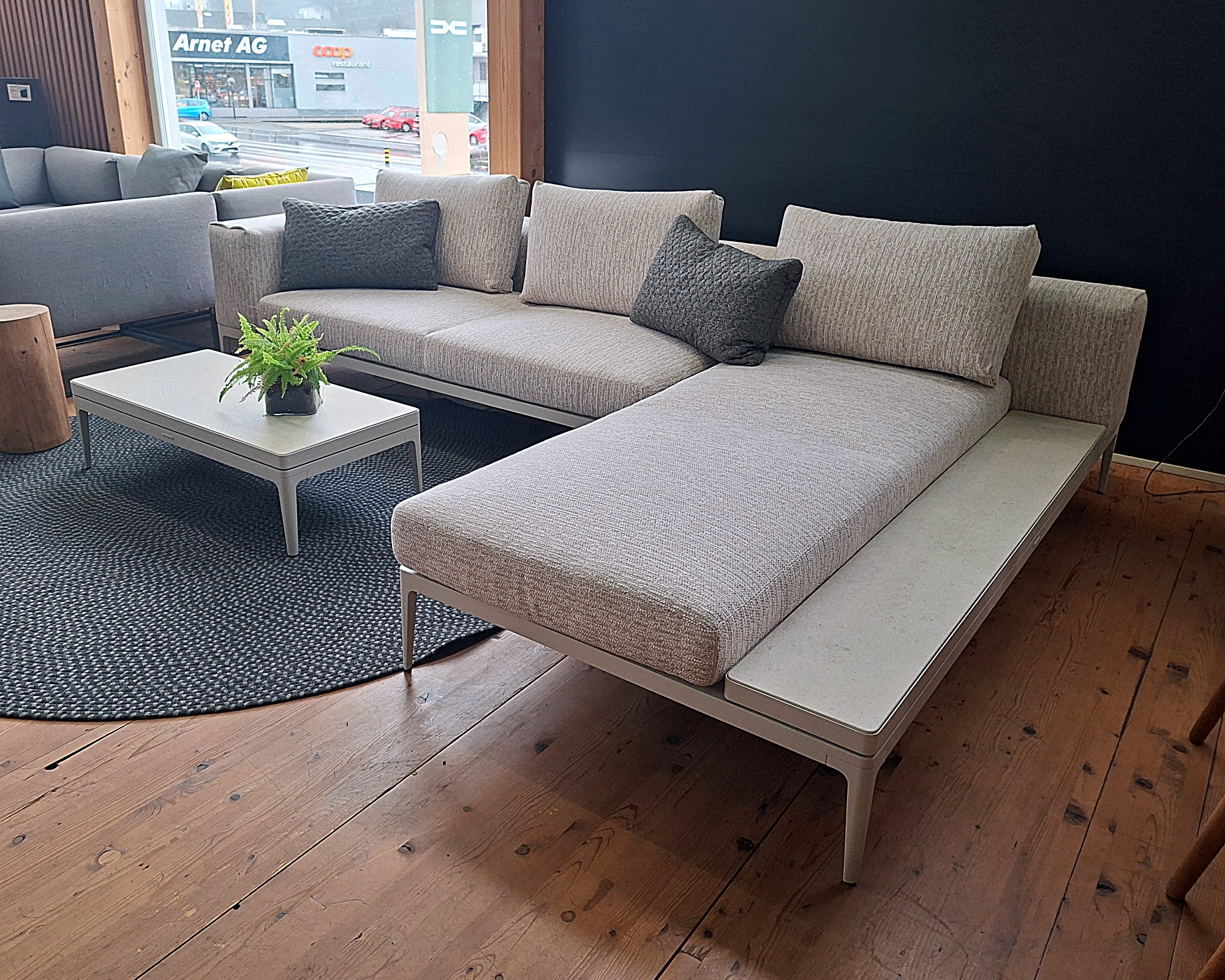 Genießen Sie Komfort, Eleganz und Funktionalität in perfekter Balance – mit der Grid Lounge Endeinheit und Chaiselounge, die wahlweise links oder rechts montiert werden kann. Ihre neue Lieblingslounge für entspannte Stunden im Freien.