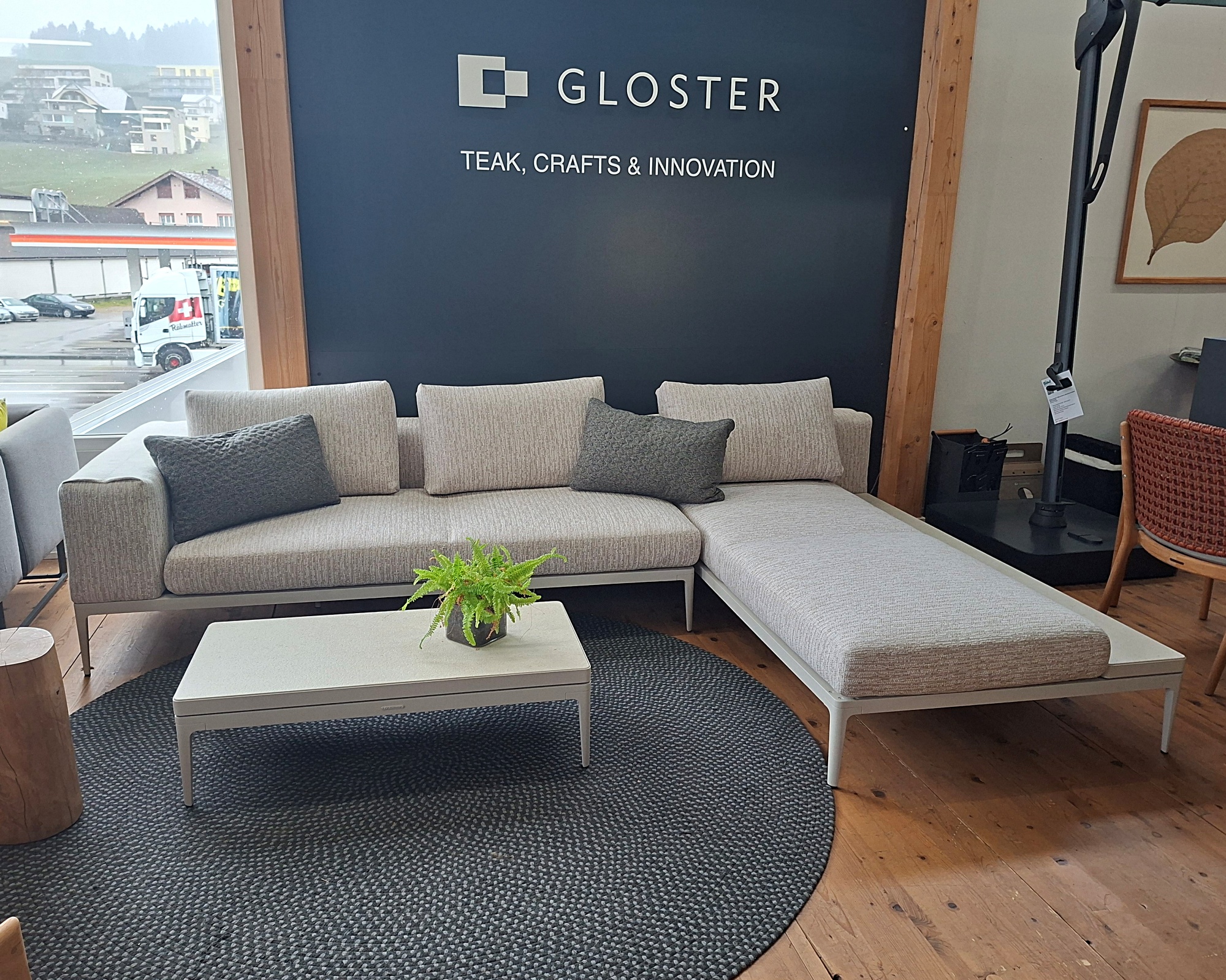 - Gloster Lounge Endteil und Chaiselounge Grid inkl. Sitz- und Rückenkissen