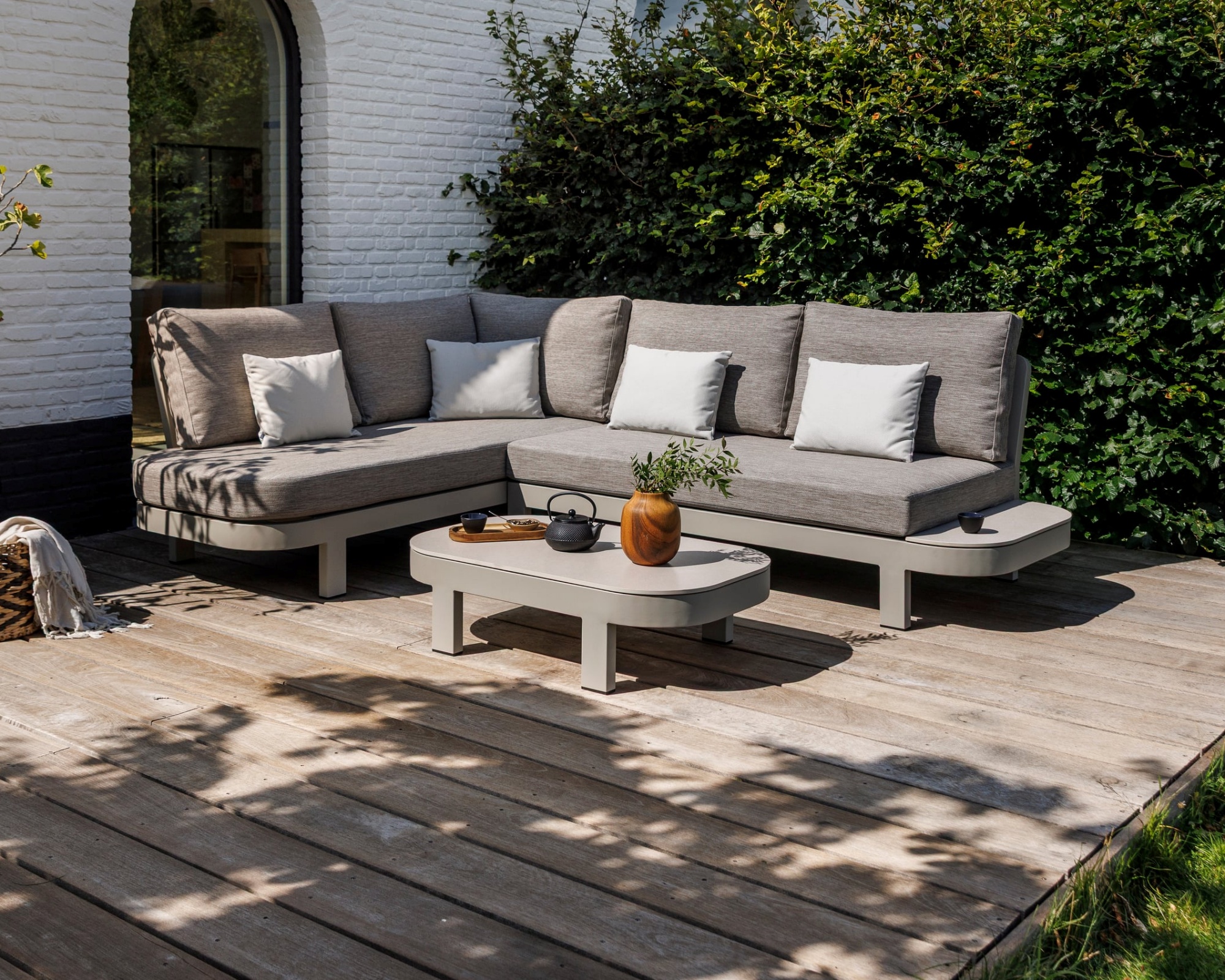 Garten Lounge Set Salvador Beige mit Tischablage rechts organsich