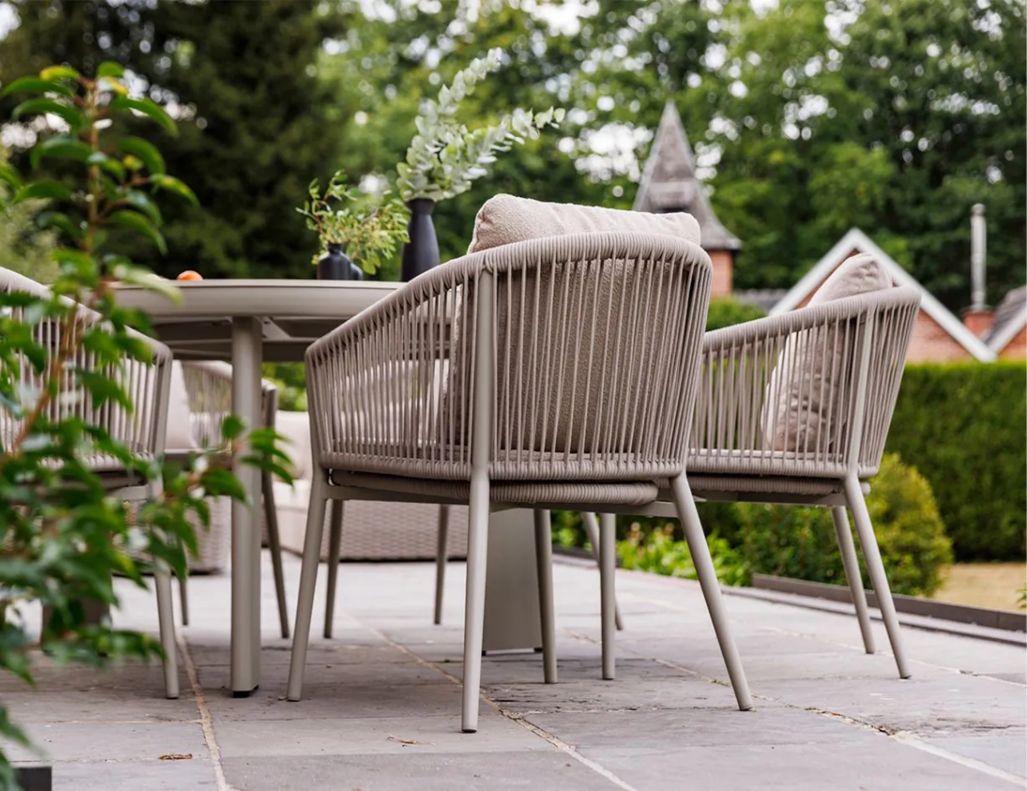 Der Gartenstuhl Malaga vereint raffiniertes Design mit hohem Sitzkomfort und bringt eine elegante, organische Note in jeden Aussenbereich. Das abgerundete Aluminiumgestell in Kombination mit dem hochwertigen RuCore+ Seil verleiht dem Stuhl eine moderne, zugleich natürliche Ausstrahlung.