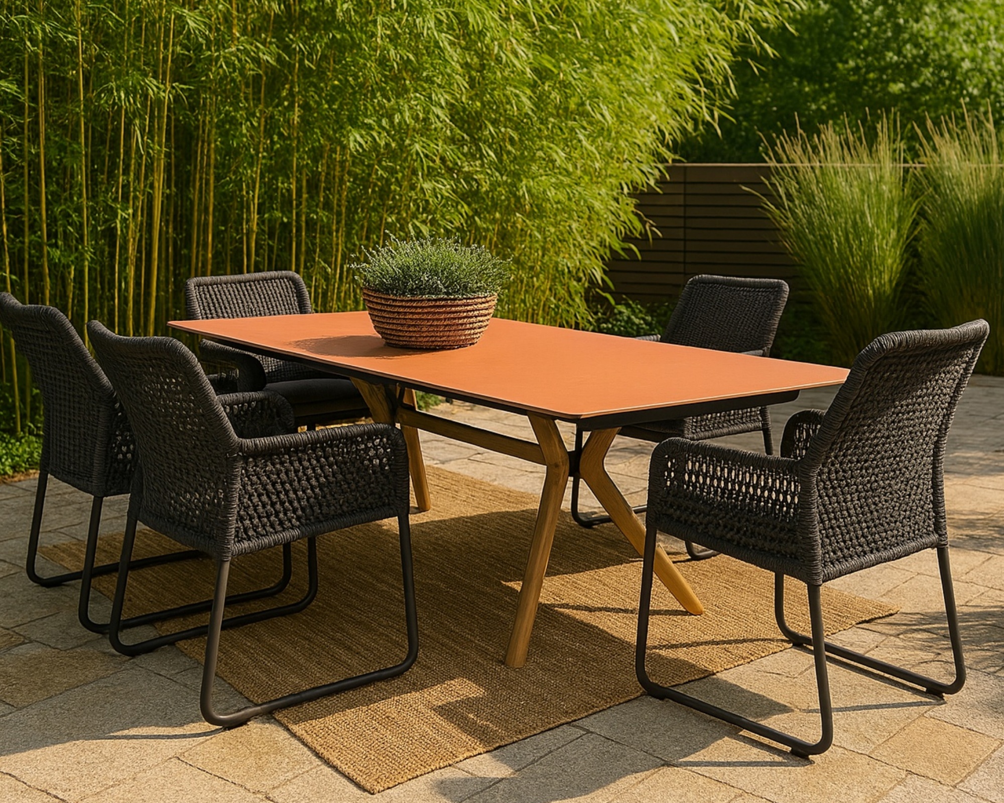- Gartentisch mit Dekton Umber, Teakholz-Gestell