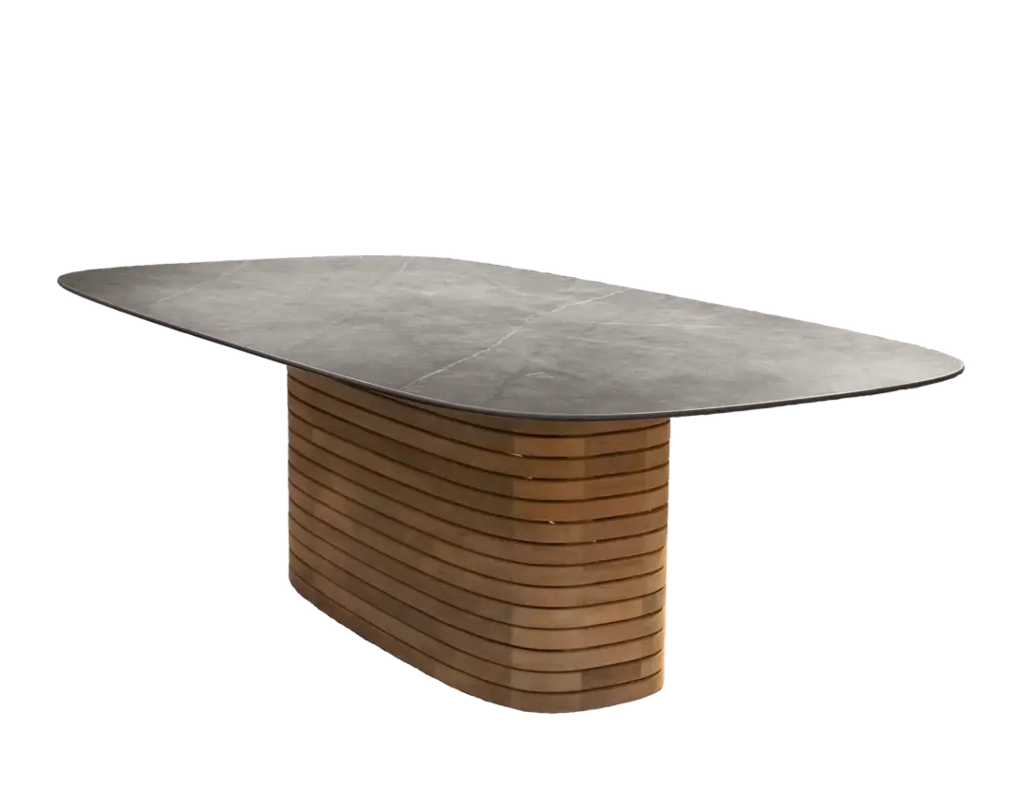- Gartentisch oval mit Keramik in Taupe, Gestell Teakholz (Tectona Grandis)