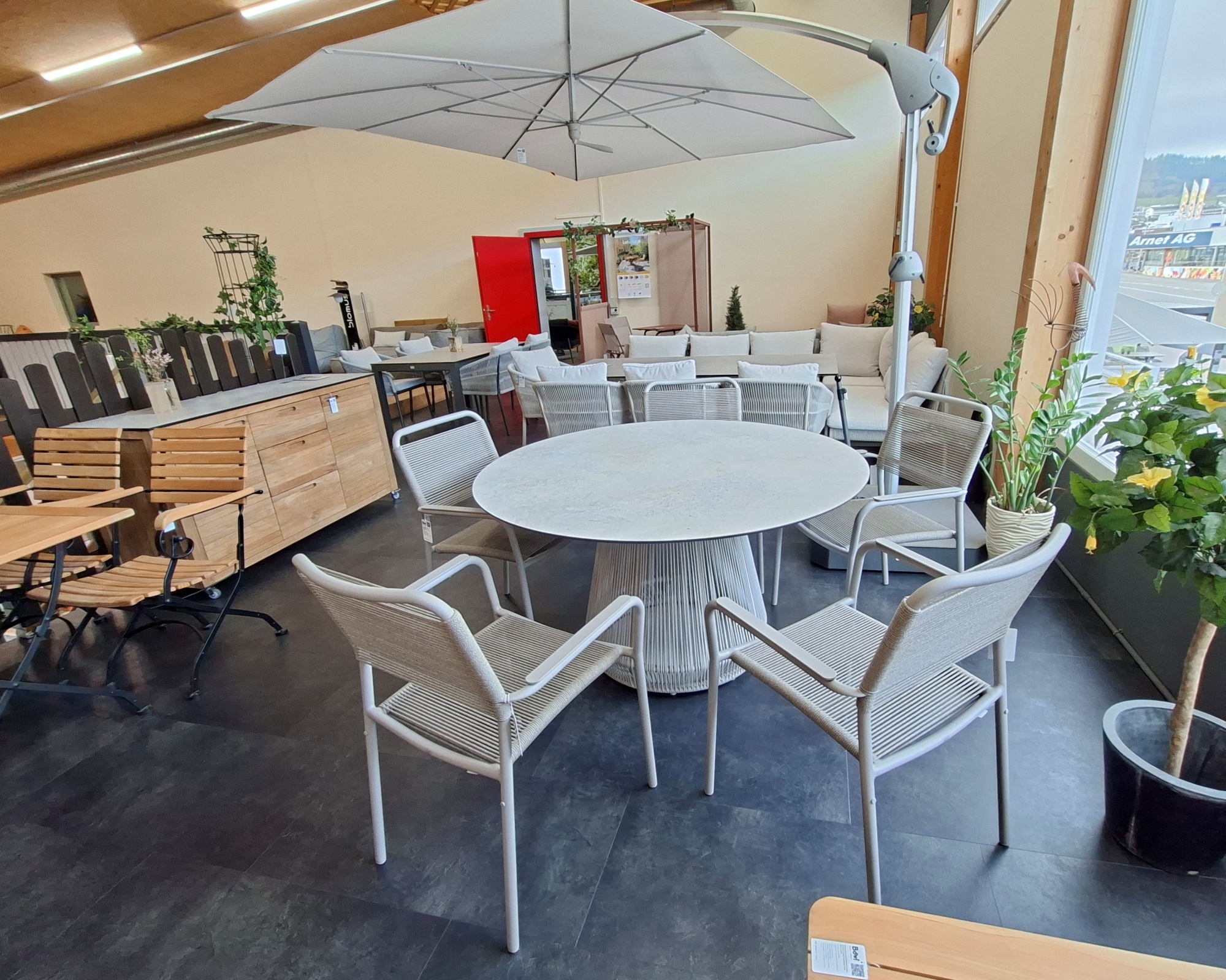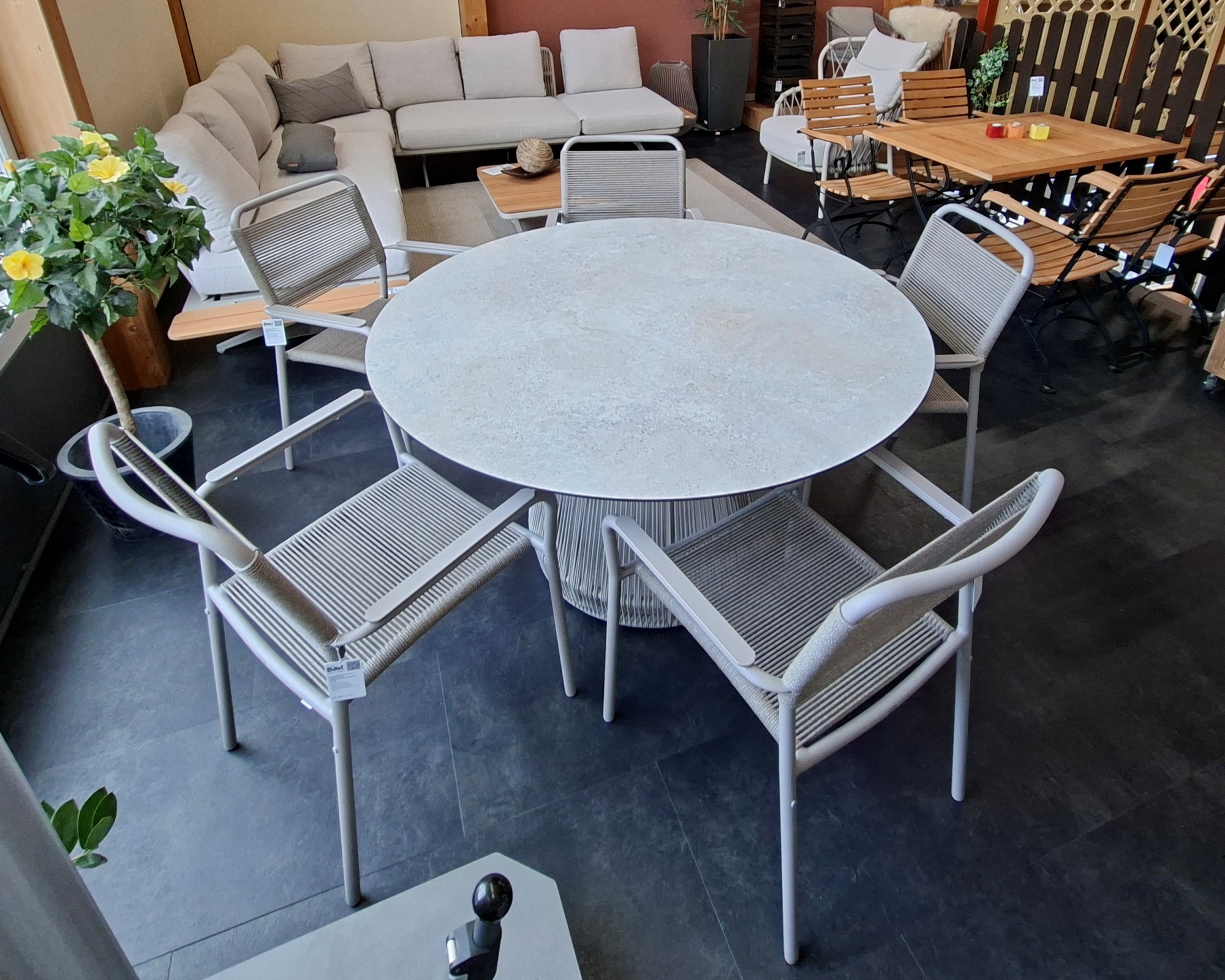 Kombiniert wird der Tisch mit dem stilvollen Gartensessel Joris, der mit seinem luftigen, filigranen Design und hohem Sitzkomfort begeistert. Die durchdachte Formgebung und hochwertige Verarbeitung machen ihn zur idealen Ergänzung für stilvolle Sommerabende.