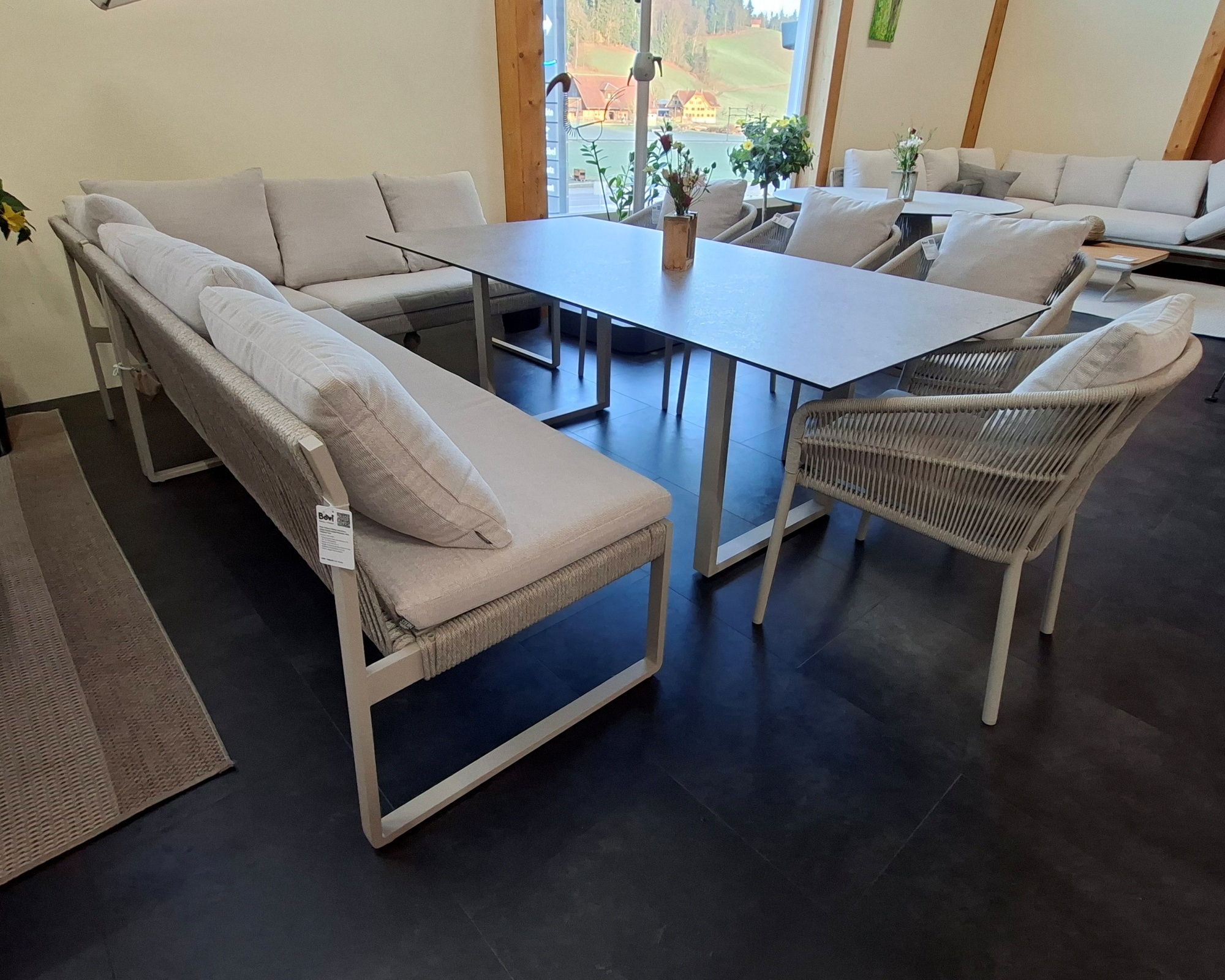 Besonders harmonisch lässt sich die Bank mit dem Kufentisch Miguel und dem Jella Stuhl aus dem Hause Stern® kombinieren. Die klare Formensprache und hochwertigen Materialien sorgen nicht nur für einen eleganten Look, sondern auch für Langlebigkeit im Outdoor-Bereich.