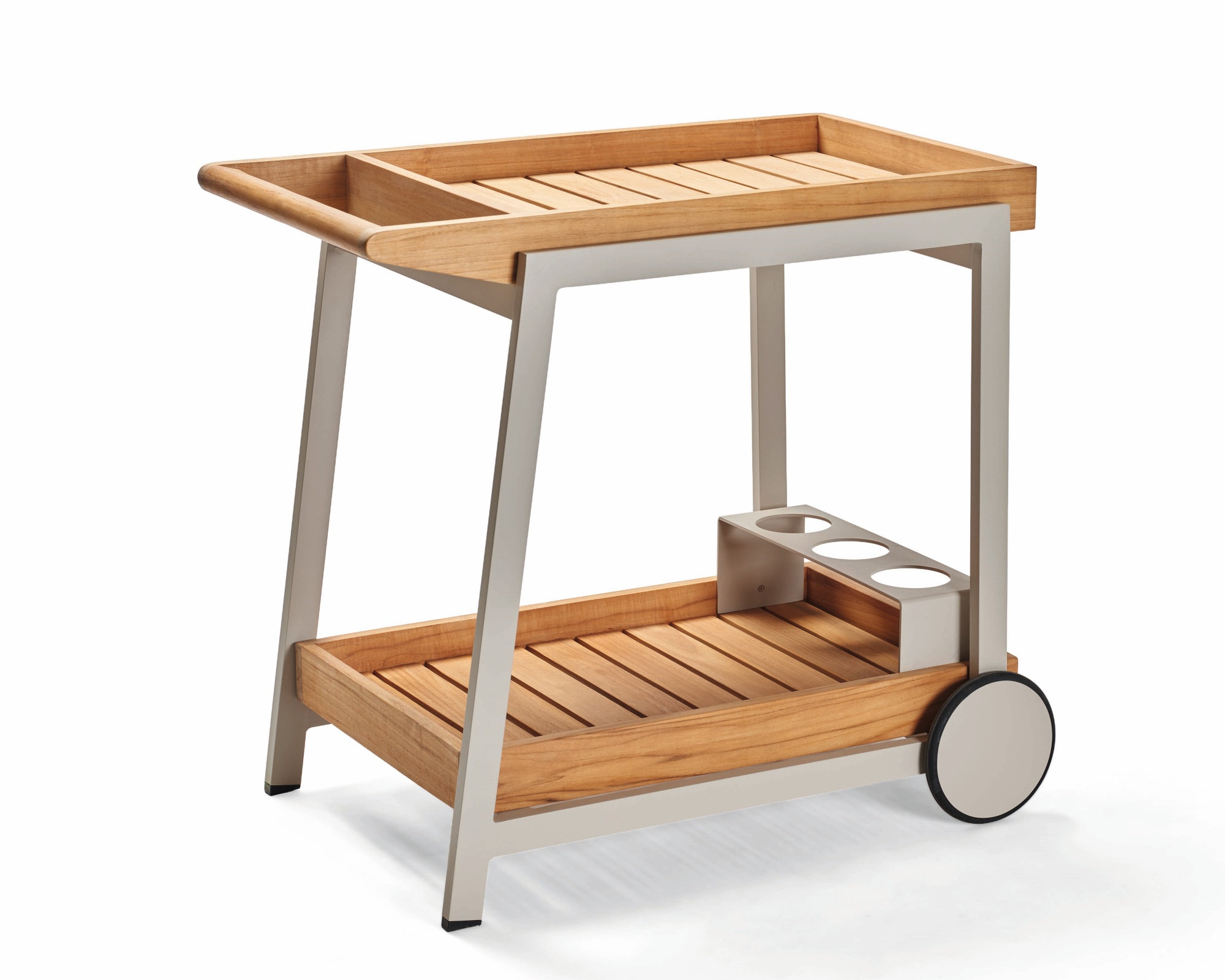 - Beistelltisch / Teewagen Teakholzplatte, Gestell Aluminium pulverbeschichtet in Greige