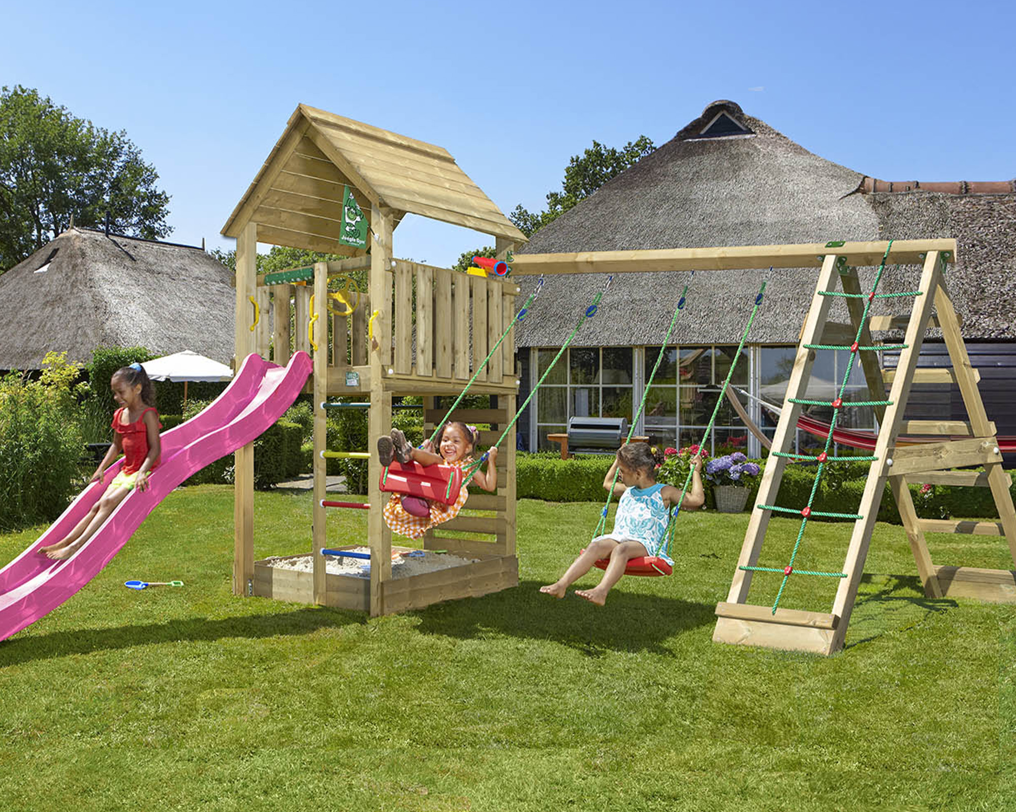 Spielturm Cabin 2.1 Fichte mit 2-teiliger Anbauschaukel Jungle Gym