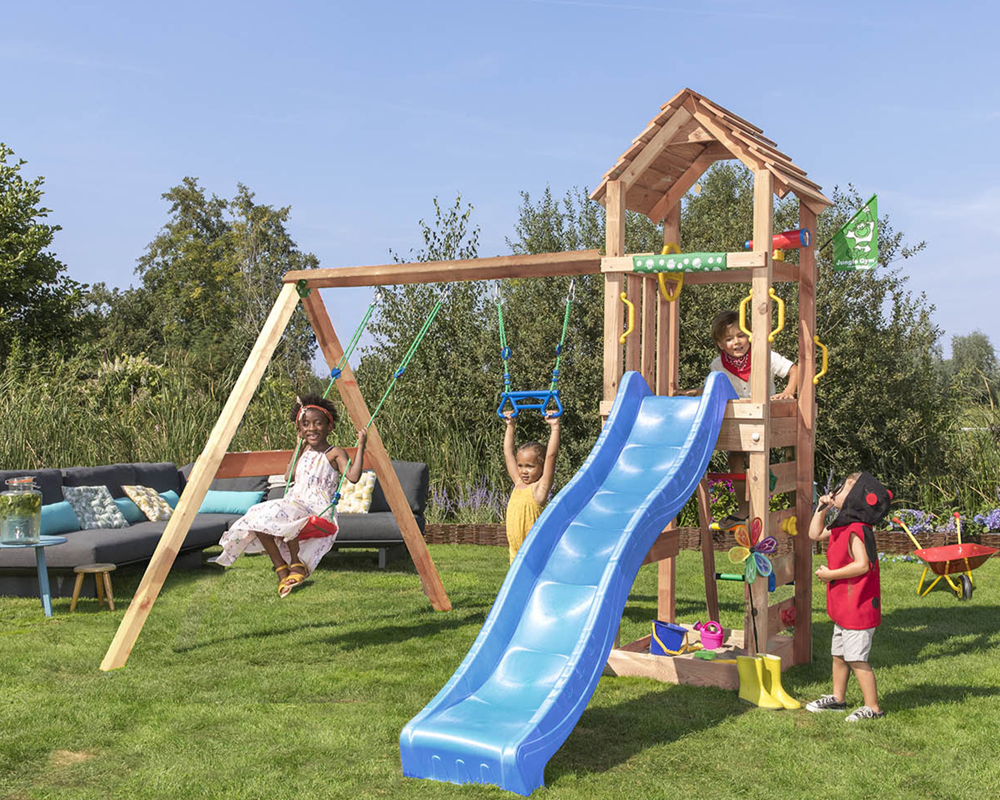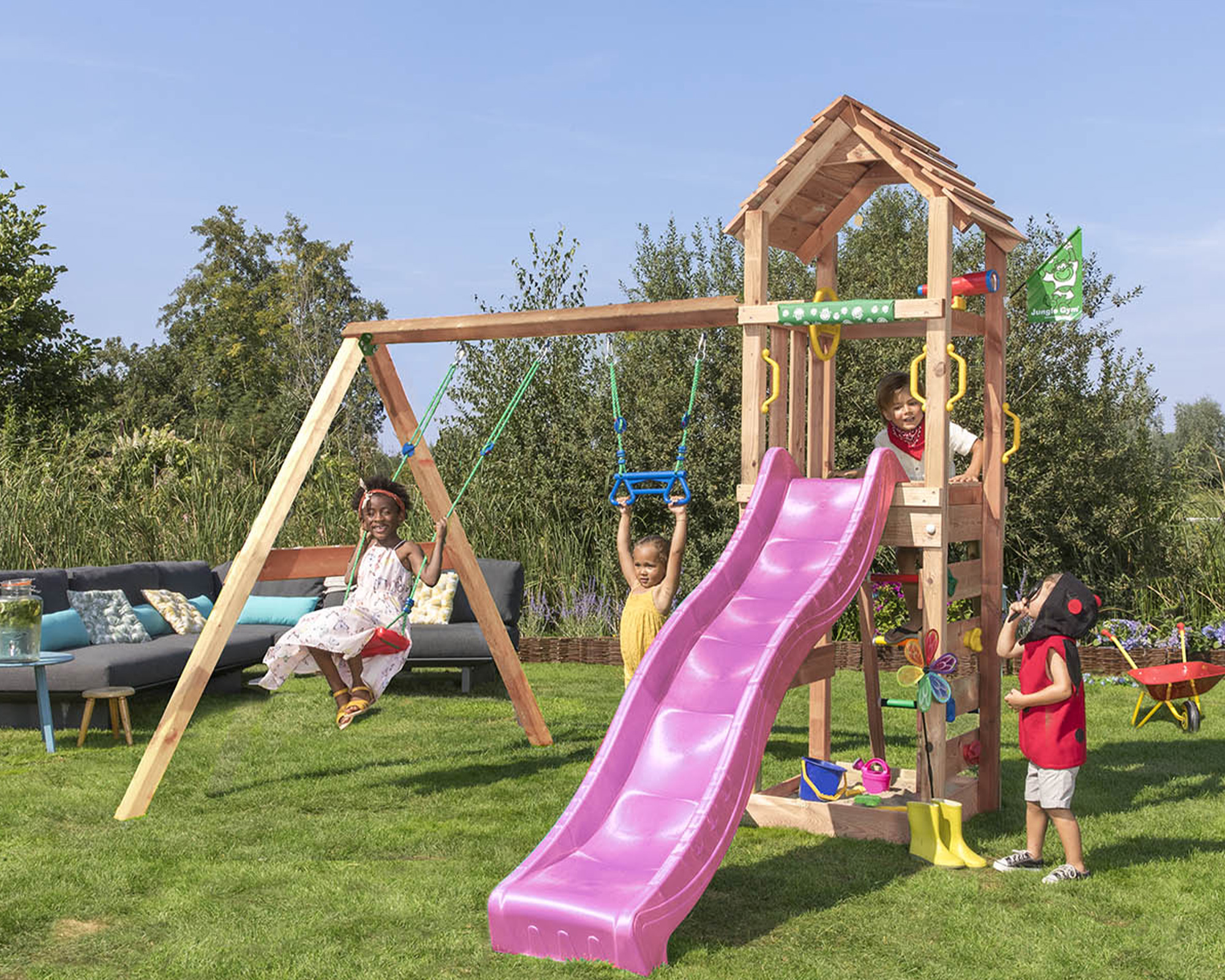 - Charmanter Spielturm für den kleinen Garten mit 2 Swing Modul 200