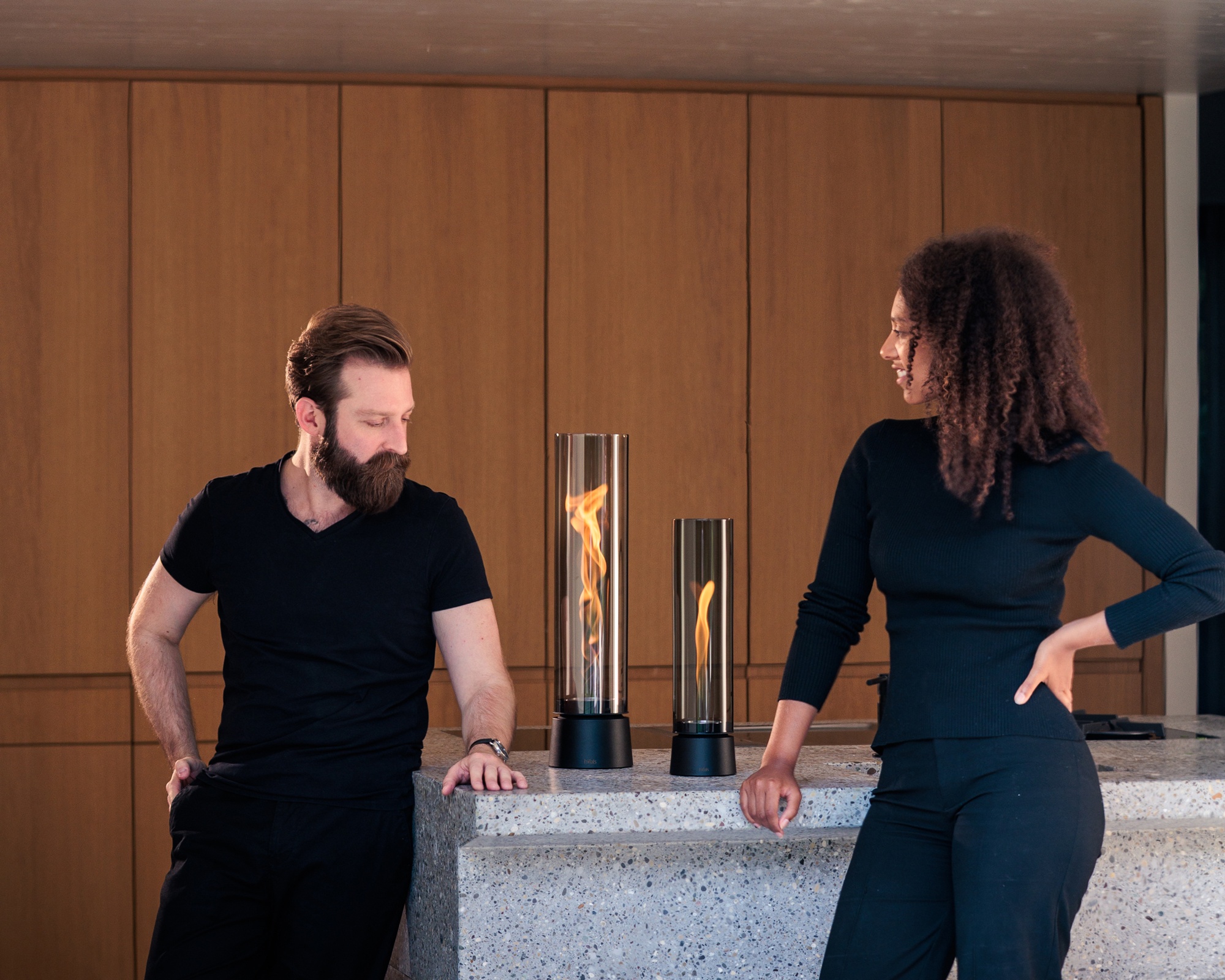 - Faszinierender Flammenwirbel im dekorativen Glaszylinder