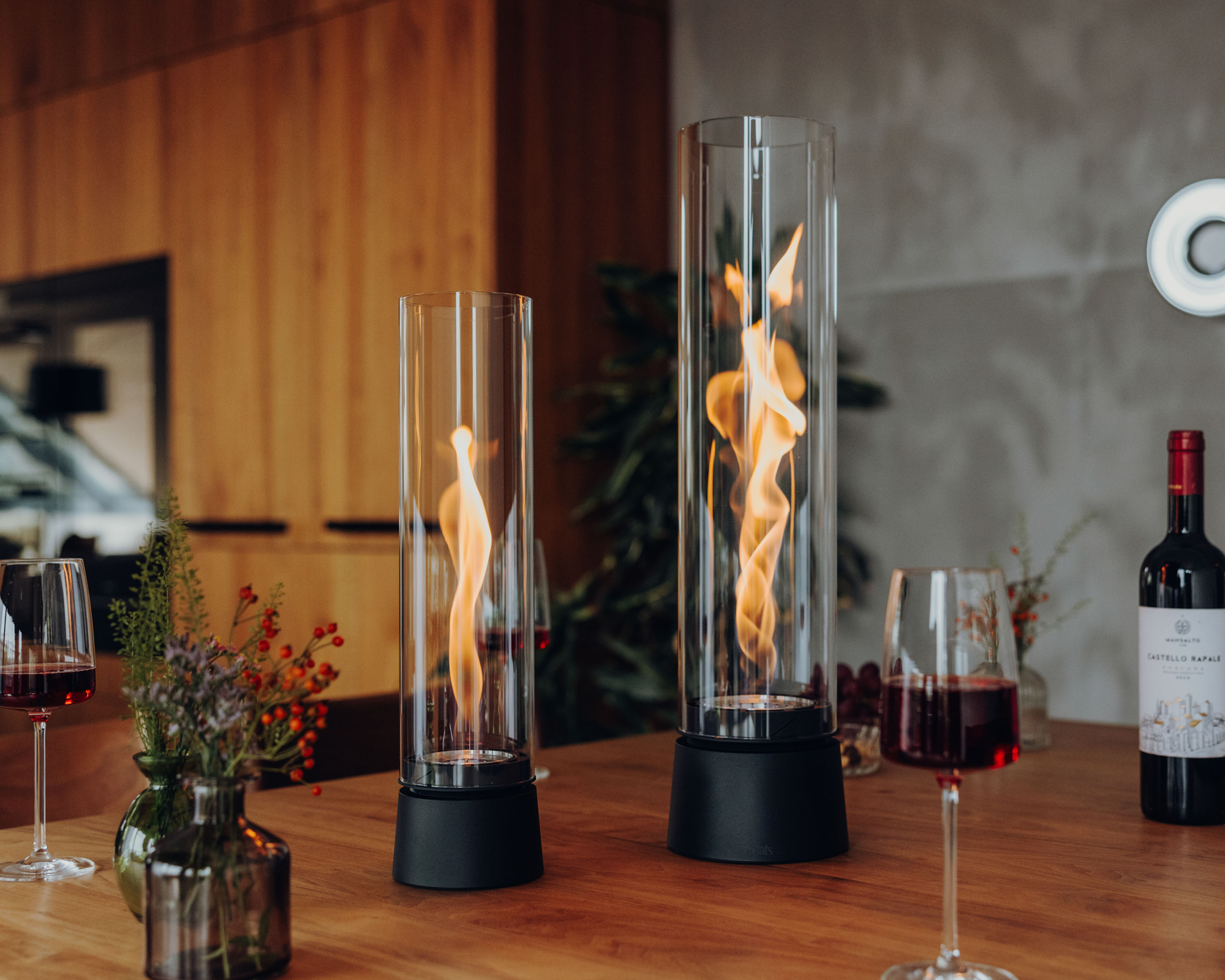 - Faszinierender Flammenwirbel im dekorativen Glaszylinder
