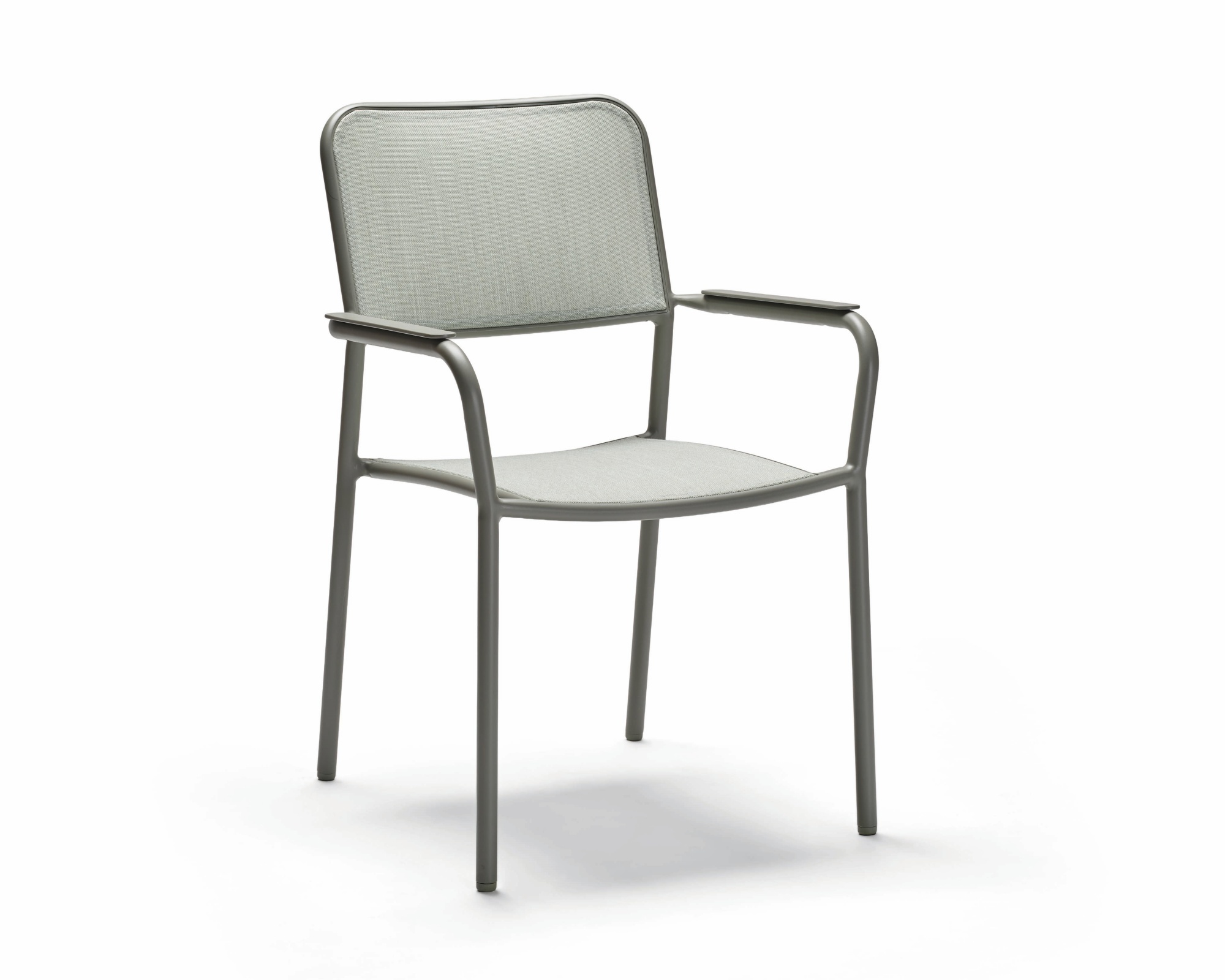 Stapelsessel Joris Aluminium Pistazie Textilen Avocado light/Aluminiumarmlehnen