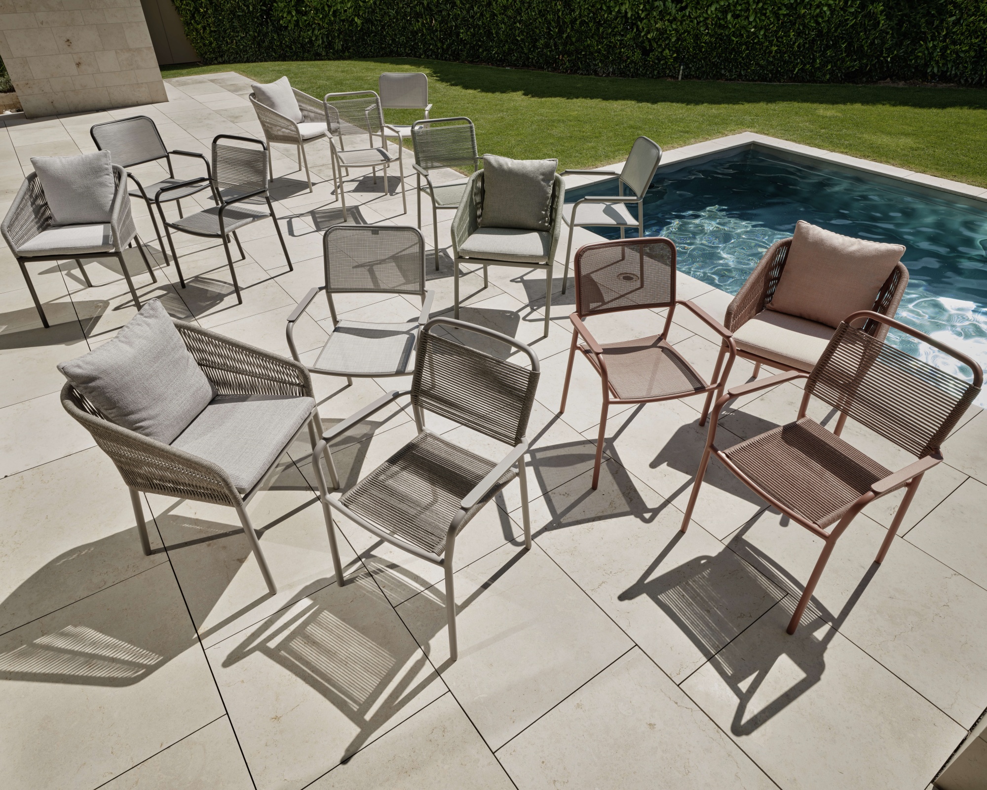 Das besonders leichte Textil wird besonders gerne als Bespannung von hochwertigen Gartenmöbeln eingesetzt. Aufgrund einer speziellen Technologie ist das Kunststoffgewebe reissfest, was es besonders flächenstabil und wetterfest macht. Zudem lässt es sich ohne grossen Aufwand einfach reinigen.