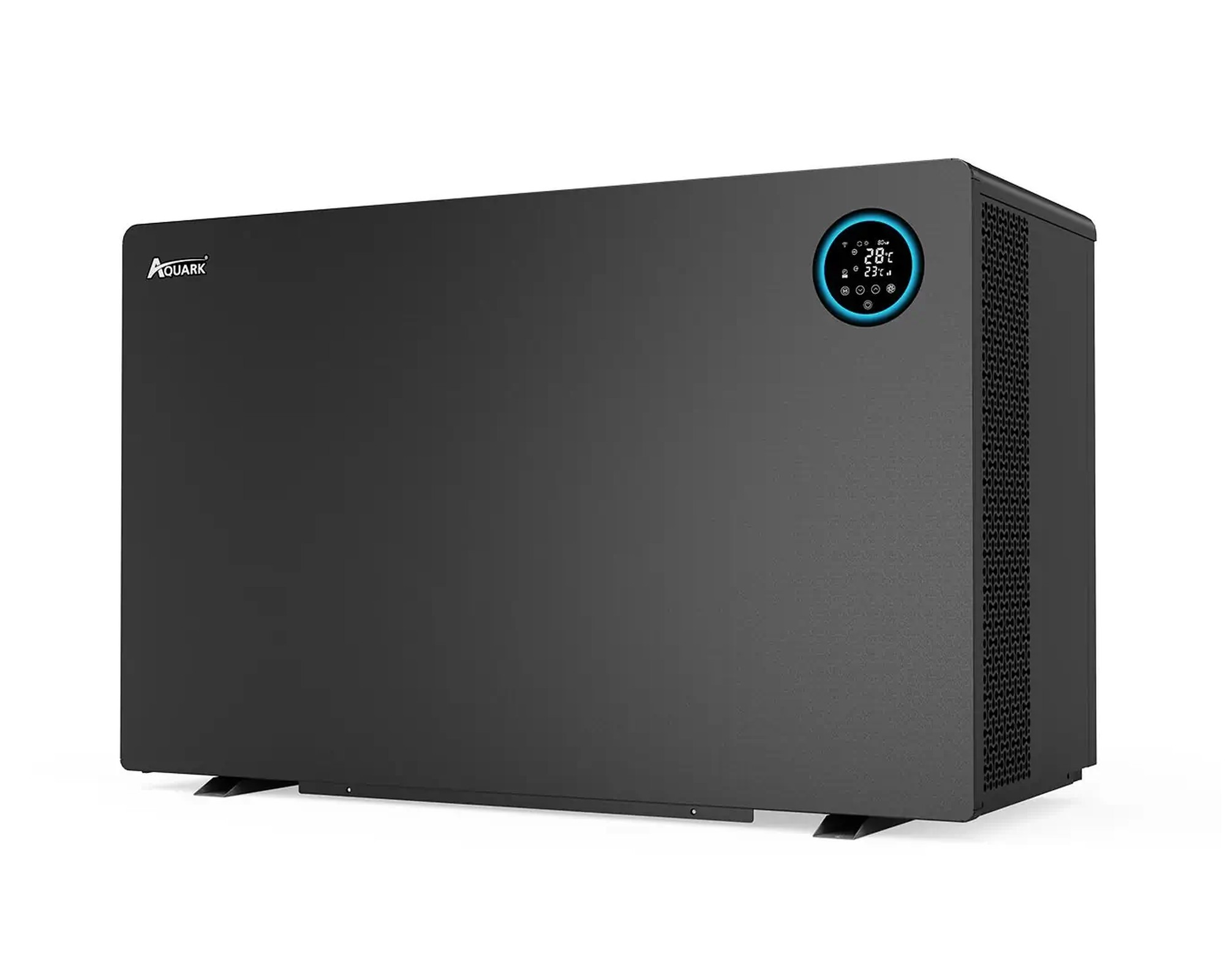 Das hochwertige Gehäuse besteht aus einer widerstandsfähigen Aluminiumlegierung, die nicht nur korrosionsbeständig und langlebig ist, sondern sich in ihrem eleganten, anthrazitfarbenen Design auch optisch hervorragend in die Gartenlandschaft einfügt. Der kompromisslose Qualitätsanspruch von Aquark zeigt sich in den langlebigen Kernkomponenten wie dem Titan-Wärmetauscher.